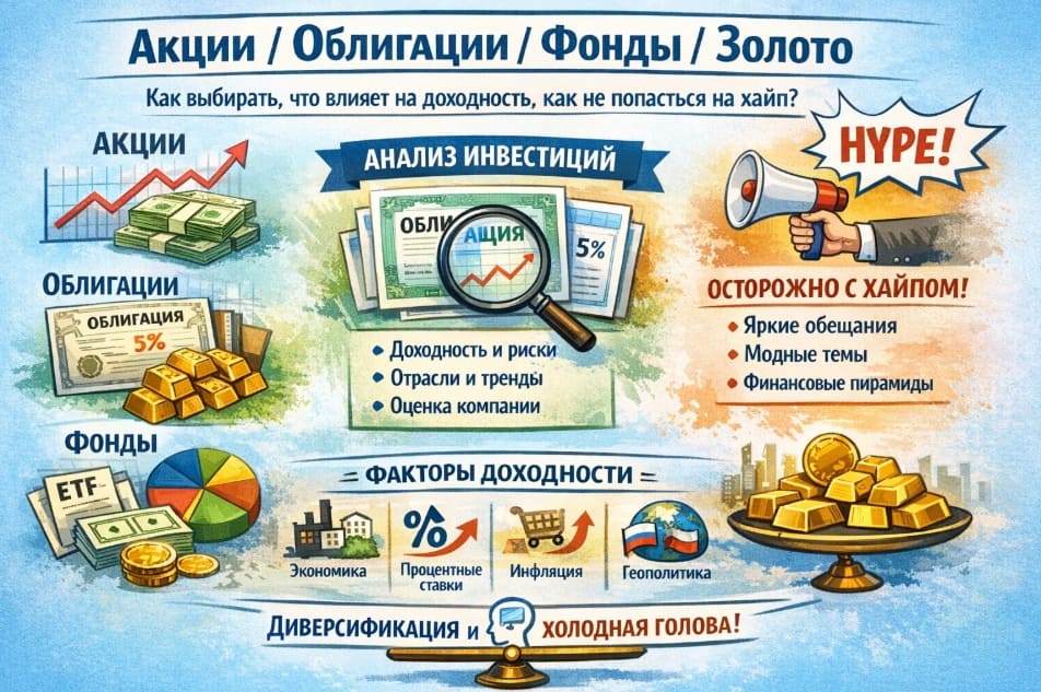 А вот здесь самое болезненное. Хайп — это когда все вокруг говорят, что надо срочно вкладываться в какой-то актив, потому что он сейчас «взлетит до луны». В 2021 году это был биткоин, в 2024 — акции AI-компаний, в 2025 кто-то кричит про золото, кто-то про юань. Проблема в том, что когда об инвестиции начинают говорить все подряд, обычно уже поздно — пик хайпа часто совпадает с максимальной ценой.